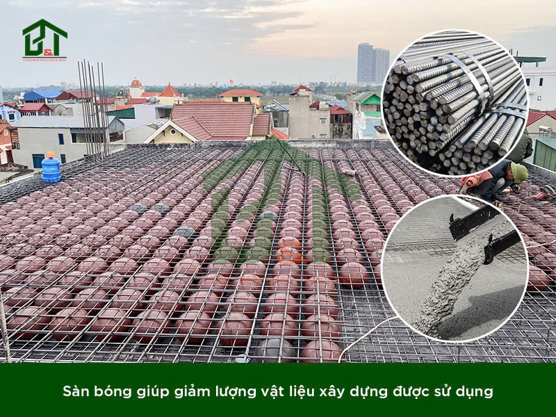 Song song với đó, cấu trúc nhẹ hơn nên sàn bóng BT giúp giảm tải trọng lên móng, từ đó giảm nhu cầu sử dụng vật liệu cho kết cấu móng và cột.